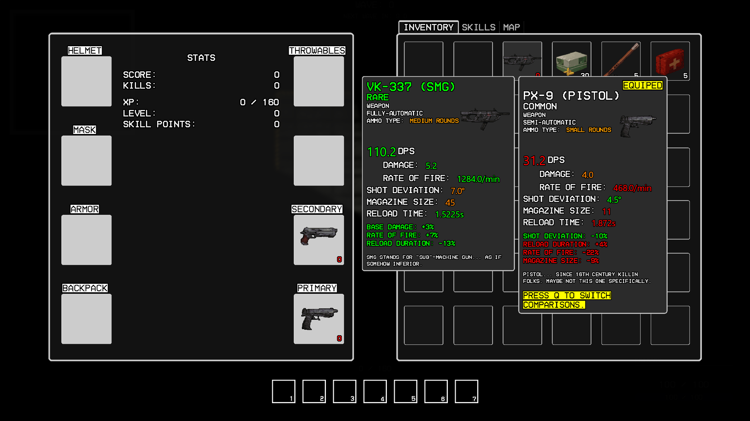 - Added the ability to compare weapons in the inventory with the ones that are already equiped.